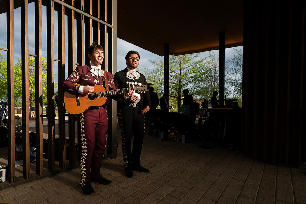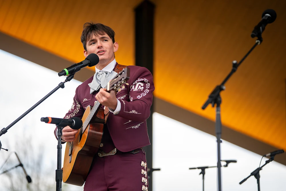 When Talamantes made it to Texas A&M, he knew he had made the right decision and quickly found a community of Aggies who shared his interests. He became involved with Aggie student groups such as the Texas A&M Rodeo Team and Aggieland Mariachi, where he serves as both a vocalist and guitar player. He can also be found performing his own music at various Texas A&M events, such as Ring Day and Aggie Gameday. These opportunities have allowed him to expand his platform, make invaluable connections and gain experience doing what he loves.